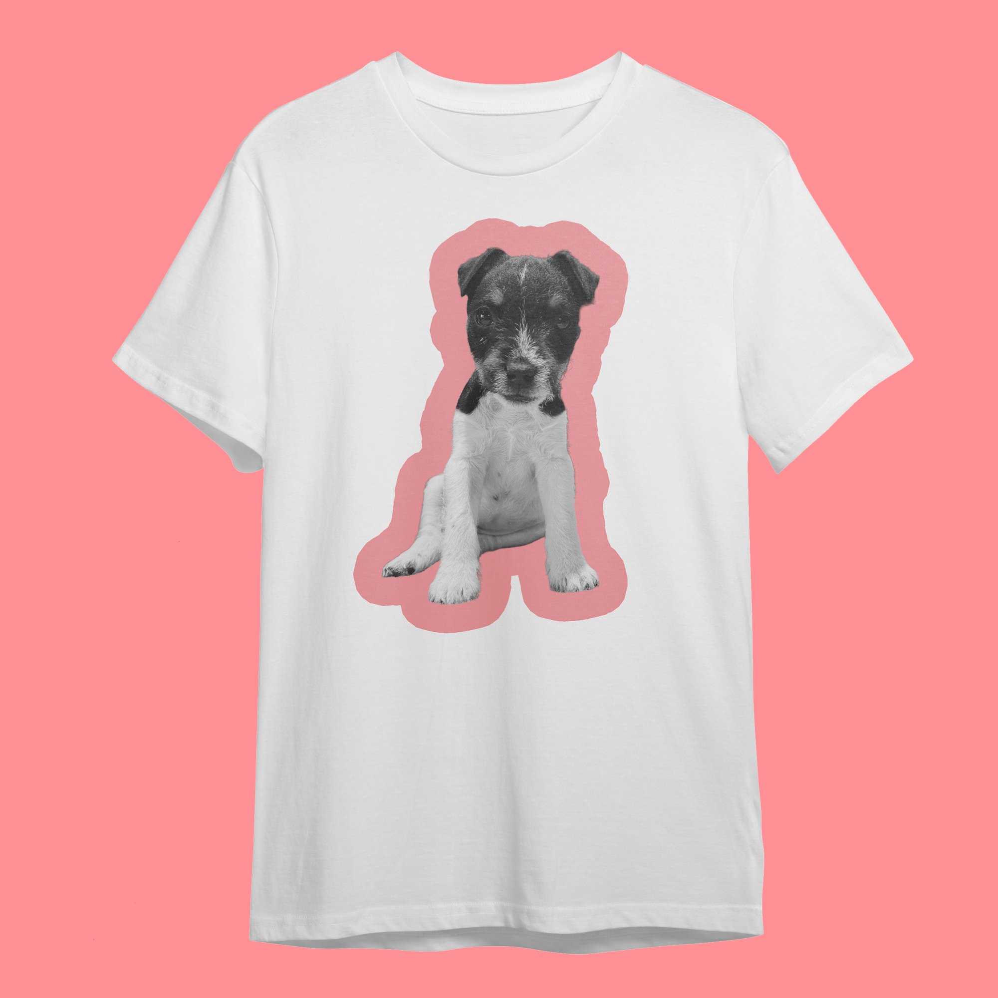 White t-shirt featuring Super Clive, Nerina's emotional support sock.