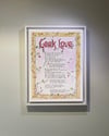 Handmade in deepest east Berkshire, a wooden box framed canvas print of the Geek Love lyric painting